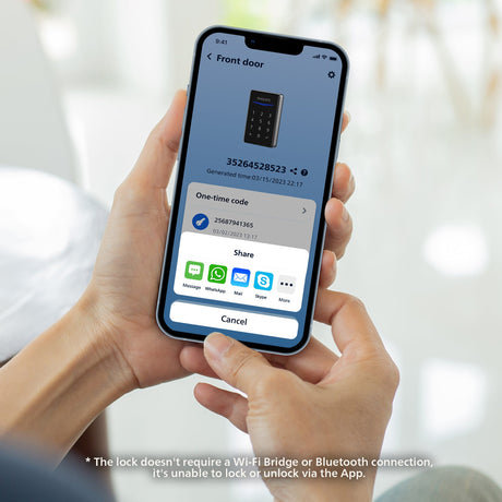 Works with the Philips Home Access app to generate a one-time PIN remotely without a Wi-Fi bridge or Bluetooth connection. You can easily share unlimited one-time PIN codes for your home with friends, family members, or anyone you want.