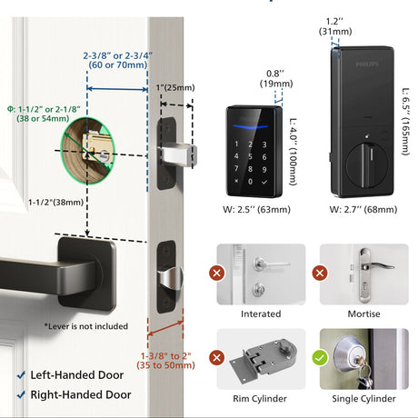 Multiple alert functions guard your home: This electronic door lock is equipped with a lockout alarm, a low battery alert, away mode for vacations, privacy mode, and other security features to ensure the safety of your home at all times. Safer and more secure, Philips electronic deadbolt brings a new smart experience.
